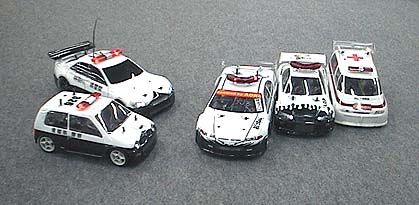 左手前が、さぶやんのミニパト、その奥が万吉パトカー 右側はおぐっちゃん