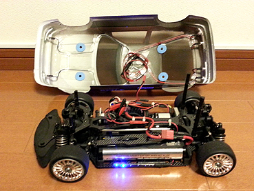 シャーシ側に調子に乗って側面にナイトライダー電飾もつけちゃいました(笑)