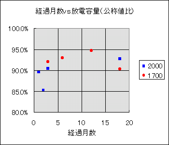 本来は放電容量の購入時値をリファレンスとして用いるべきだが、データが無い為、公称容量(1700or2000)と