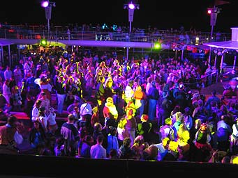 船上のオープンデッキが、屋外大ディスコ状態となって盛り上がっていた